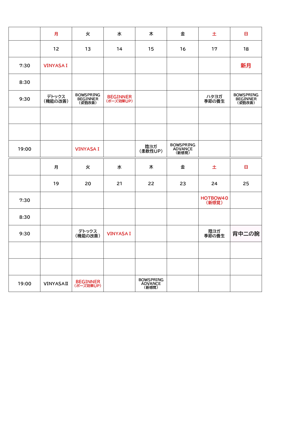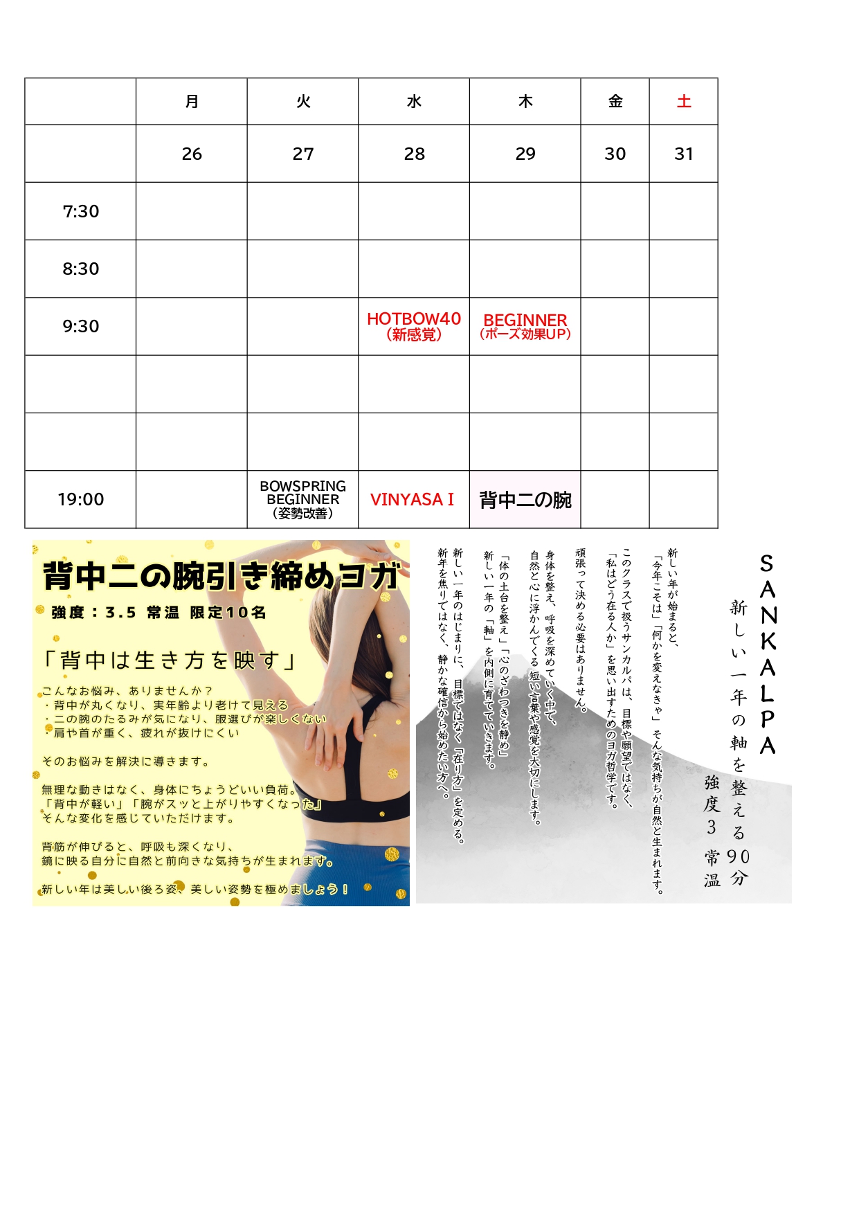 ◎当店はホット・常温レッスンがございます。◎環境およびレッスン内容につきましては直接お問合せください。